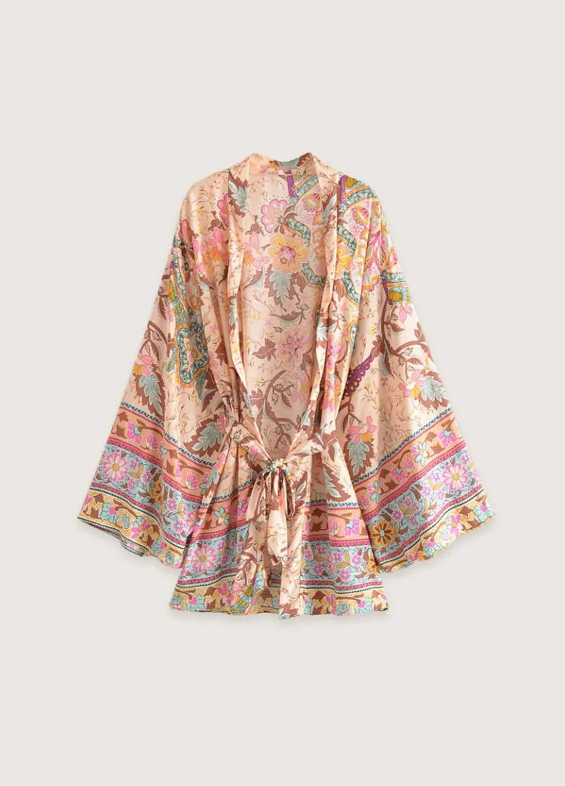 Kimono court bohème femme : élégance florale et liberté de mouvement Ce kimono bohème court pour femme révolutionne votre garde-robe avec ses motifs floraux vibrants aux teintes de rose et bleu. Confectionné dans un tissu léger et soyeux, cette veste japonaise offre un confort optimal tout en conservant une silhouette flatteuse grâce à ses manches amples et sa ceinture ajustable . Pourquoi ce haori court transformera-t-il votre style ? Cette tunique orientale transcende les codes vestimentaires classiques. Son drapé élégant et sa coupe oversize s’adaptent à toutes les morphologies, créant un look casual chic parfait pour vos sorties décontractées ou vos moments de détente à la maison. La polyvalence de ce cardigan asiatique en fait une pièce incontournable de votre collection capsule. Cara