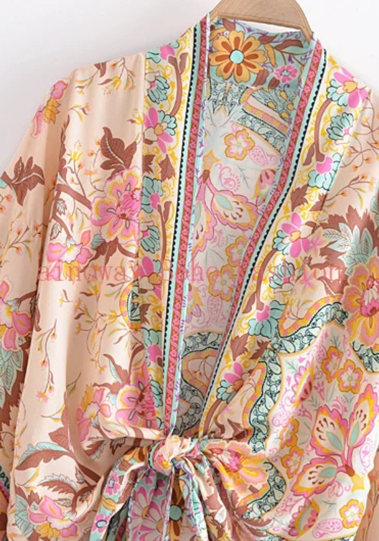 Nos kimonos sont en tissus légers (polyester, viscose, satin). Lavage en machine à 30°C recommandé, ou lavage à la main. Séchage à l'air libre, repassage à basse température.