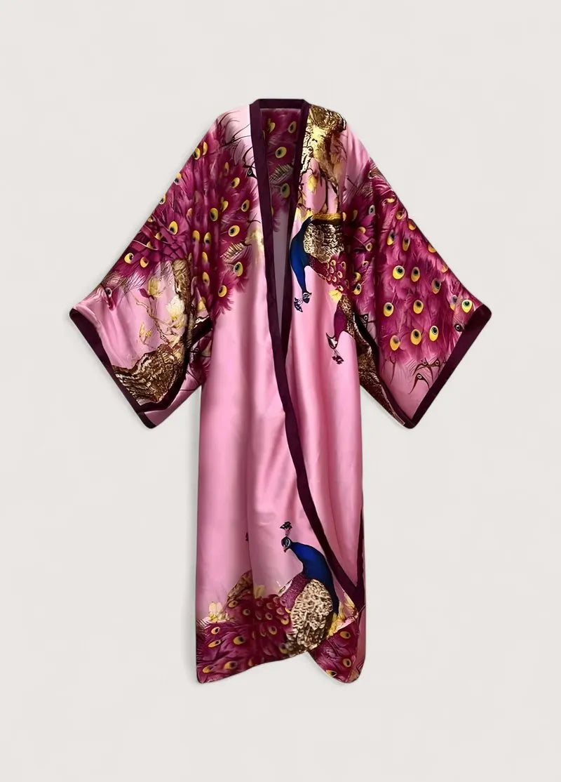 Satin rose femme : votre kimono d’exception aux motifs paon Le kimono en satin rose pour femme transforme chaque moment en une expérience de pure élégance. Confectionné dans une imitation satin polyester de qualité supérieure, ce vêtement traditionne