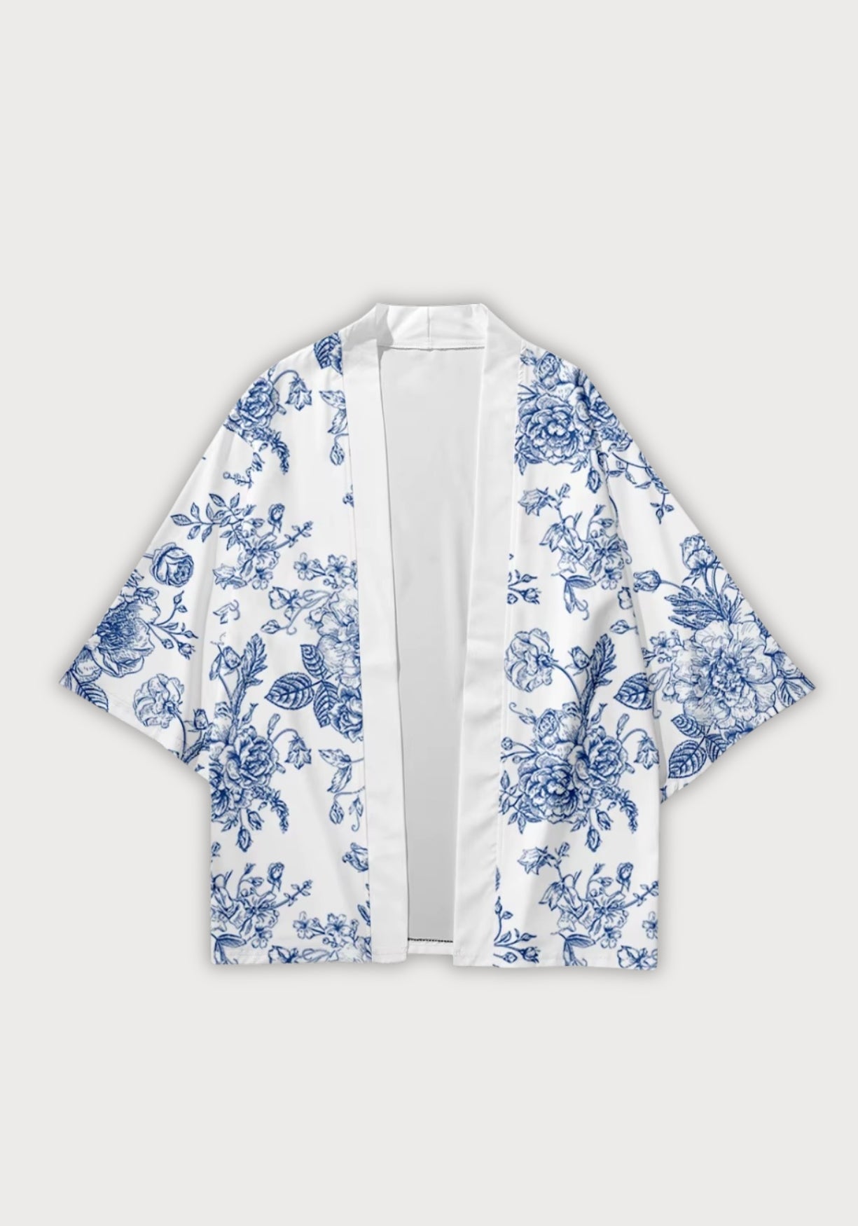 Veste kimono homme aux motifs floraux japonais Cette veste kimono aux fleurs japonaises séduit par son allure raffinée et son esprit artistique. Conçue dans un tissu fluide au toucher soyeux, elle accompagne les mouvements avec légèreté et procure un confort idéal, que ce soit pour les journées d’été ou pour des soirées habillées. Sur le blanc lumineux du fond, de délicats motifs floraux bleus s’épanouissent, rappelant la finesse des porcelaines japonaises traditionnelles. Chaque détail floral ajoute une touche poétique et une élégance intemporelle. La coupe ample et les manches trois-quarts, typiques du kimono, offrent une liberté de mouvement agréable tout en conservant une silhouette moderne. Avec son col sobre et sa coupe ouverte à l’avant, cette veste se porte facilement sur un t-shirt uni, une chemise légère ou même une tenue plus habillée. L’équilibre entre le blanc éclatant et les fleurs bleues délicates en fait une pièce chic et décontractée à la fois. Polyvalente, cette veste kimono homme fleurie se porte aussi bien en ville qu’en bord de mer. Elle se marie parfaitement avec un jean brut, un pantalon en lin ou un short élégant, et crée un style qui mêle tradition japonaise et modernité. Son esthétique florale en fait une pièce singulière qui attire le regard avec subtilité. Une veste kimono inspirée du Japon : légère, élégante et ornée de fleurs bleues délicates, pensée pour sublimer chaque silhouette masculine. Tissu principal : Polyester