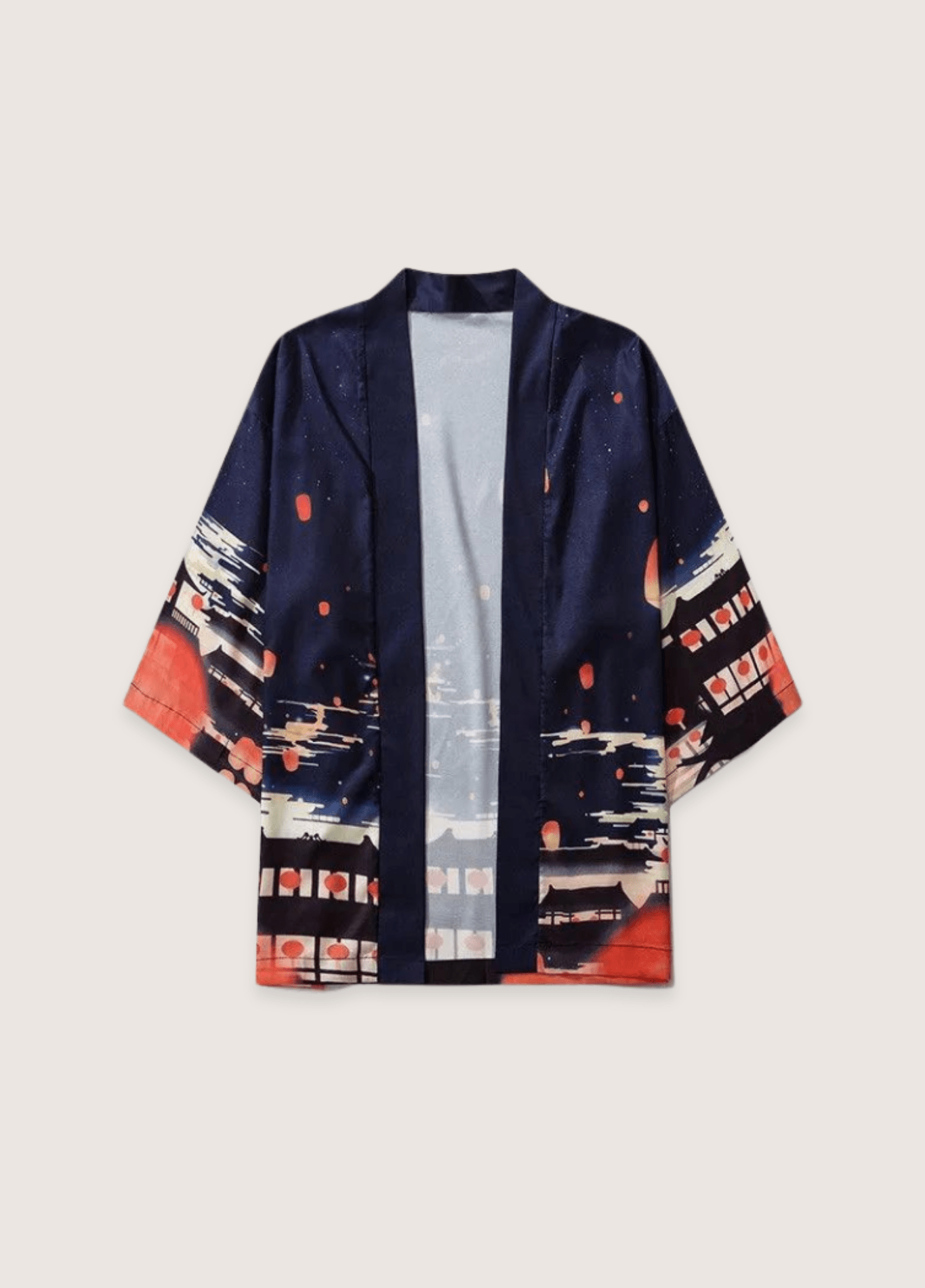 Kimono japonais pour homme et femme Découvrez notre kimono japonais Lanternes Nocturnes, une pièce unique pour votre garde-robe. Ce vêtement, conçu pour les hommes et les femmes, allie élégance et tradition japonaise. Ce kimono japonais illustre au d