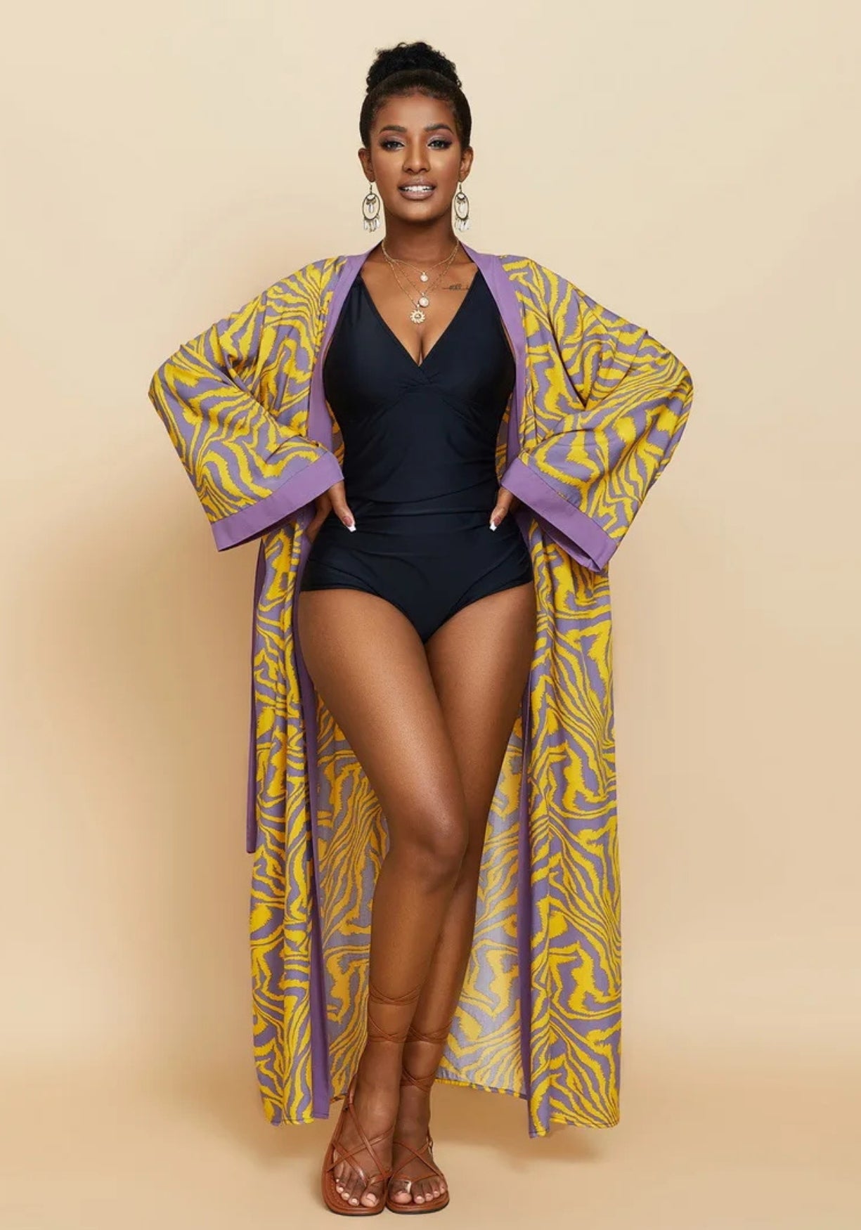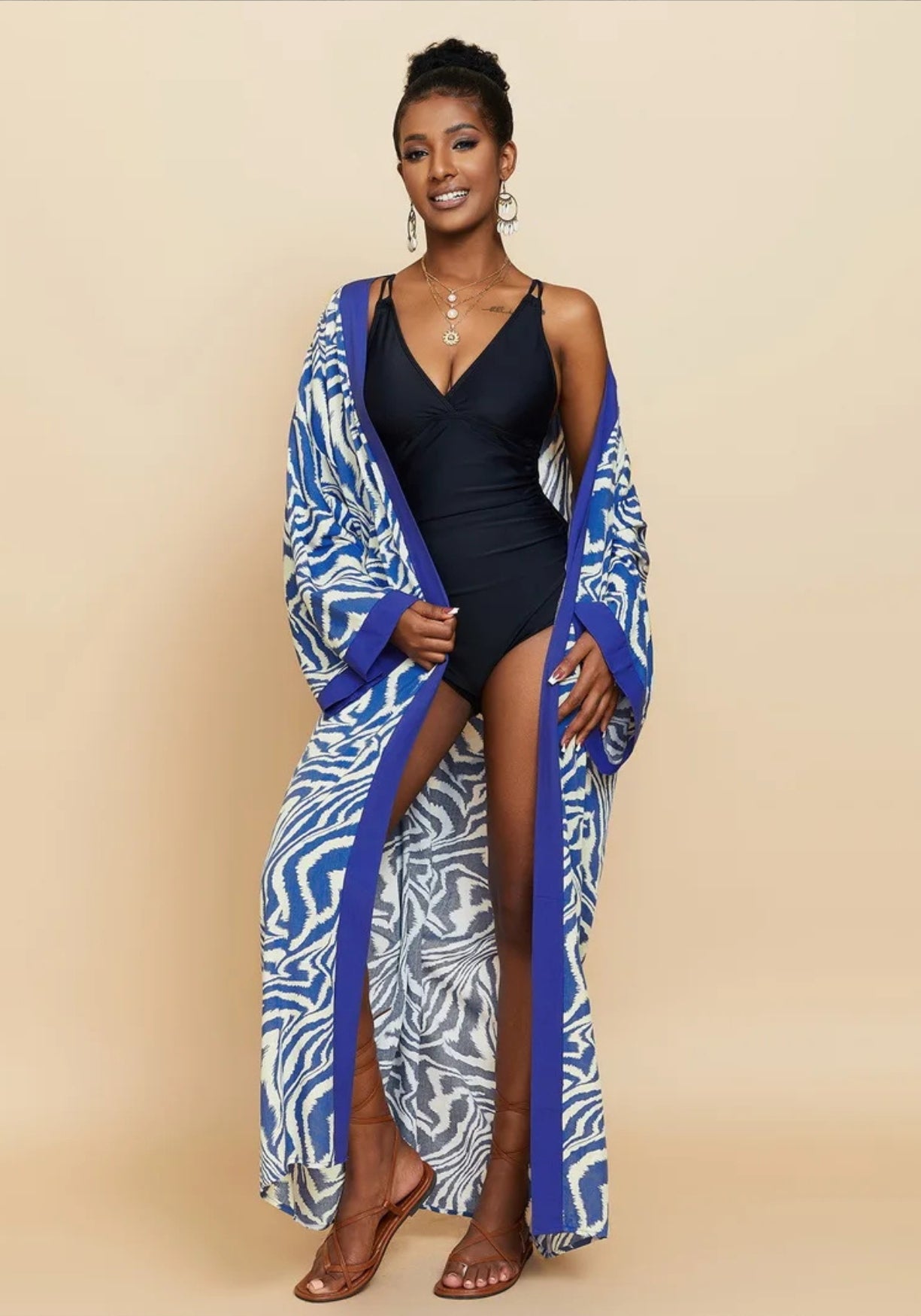 Kimono long à motif pour femme Osez une allure audacieuse avec ce kimono long à motif zébré . Sa coupe fluide, ses manches longues et son imprimé animalier revisité font de lui une pièce d’exception, idéale pour sublimer vos tenues de plage ou vos escapades en bord de mer. Léger et agréable à porter, il se drape élégamment sur un maillot de bain ou une tenue d’été. Son tissu doux, souple et respirant épouse les mouvements du corps avec grâce. Parfait pour flâner en bord de mer, se couvrir avec style après un bain, ou ajouter une touche couture à votre silhouette. Disponible en plusieurs coloris vibrants ou intemporels, ce kimono est conçu pour celles qui aiment voyager avec élégance et se démarquer sans effort. L’exubérance d’un motif sauvage, la légèreté d’un vêtement signature. Composition : 100% polyester.