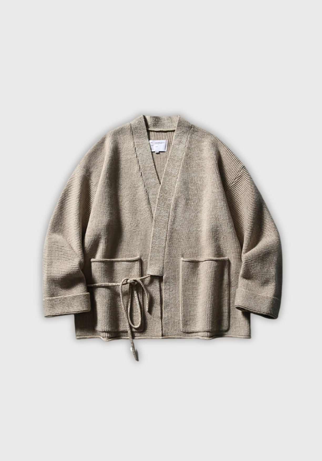 Pull kimono en laine pour homme et femme Épure, confort et caractère. Ce pull façon kimono revisite une pièce traditionnelle japonaise dans une version contemporaine pensée pour le quotidien. Avec sa coupe droite, son col en V et sa ceinture discrète à nouer à la taille, il enveloppe le corps avec justesse, sans jamais le contraindre. Confectionné dans une maille douce au toucher , il offre une chaleur légère idéale pour la mi-saison. Les manches longues légèrement tombantes et les deux poches plaquées renforcent son allure décontractée et soignée à la fois. Porté sur un t-shirt en coton, un col roulé fin ou à même la peau, il s’adapte à tous les styles. Disponible en beige vanille ou en gris chiné, il se marie aussi bien avec un pantalon ample qu’un jean brut, pour un look sobre et affirmé. Un kimono essentiel pour ceux et celles qui aiment les vêtements simples, bien coupés, et qui racontent une histoire. Composition : Laine Polyester