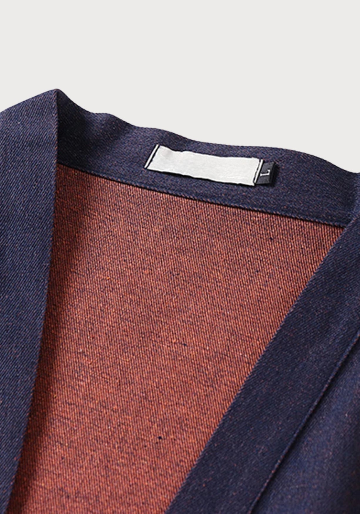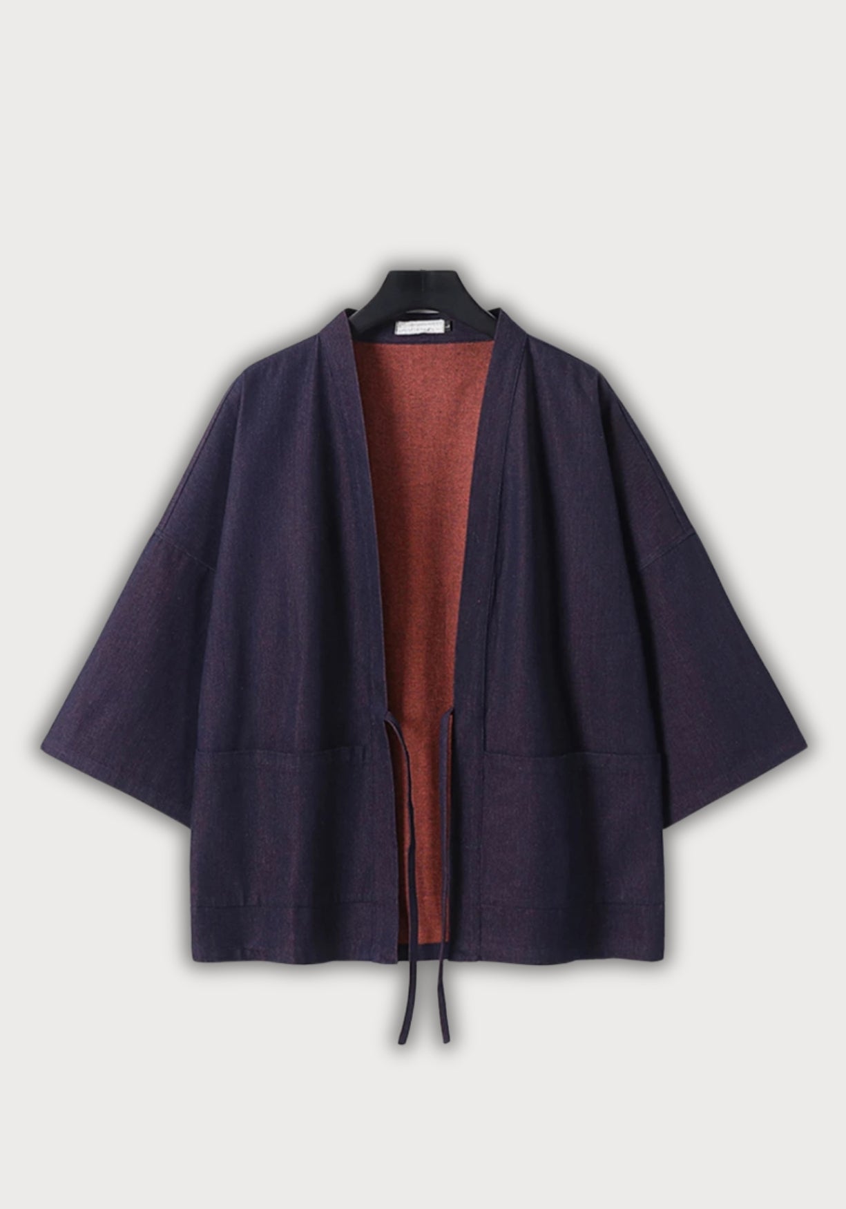 Veste kimono unisexe en denim — réversible Découvrez notre veste kimono en denim pour homme et femme , une pièce unique qui fusionne l’élégance du kimono japonais traditionnel avec une esthétique urbaine moderne. Réalisée dans un denim 100% coton premium, elle offre une tenue impeccable tout en garantissant un confort durable au quotidien. Sa coupe ample et droite assure une liberté de mouvement naturelle, tandis que la ceinture à nouer permet un ajustement personnalisé. Ce modèle est réversible : d’un côté un denim bleu encre intemporel, de l’autre une doublure colorée raffinée pour varier les styles selon vos envies. Dotée de manches trois-quarts , de poches plaquées pratiques et de finitions minutieusement travaillées, cette veste allie fonctionnalité et sophistication. Polyvalente et facile à porter, elle s’associe aussi bien à un t-shirt blanc qu’à un pantalon fluide pour créer un look casual chic ou plus habillé. Parfaite pour la mi-saison , cette veste kimono unisexe deviendra rapidement un indispensable pour celles et ceux qui apprécient la sobriété élégante et le style sans effort. Un kimono court, moderne et réversible, pensé pour les amoureux du style minimaliste. Composition : 100% coton (denim).