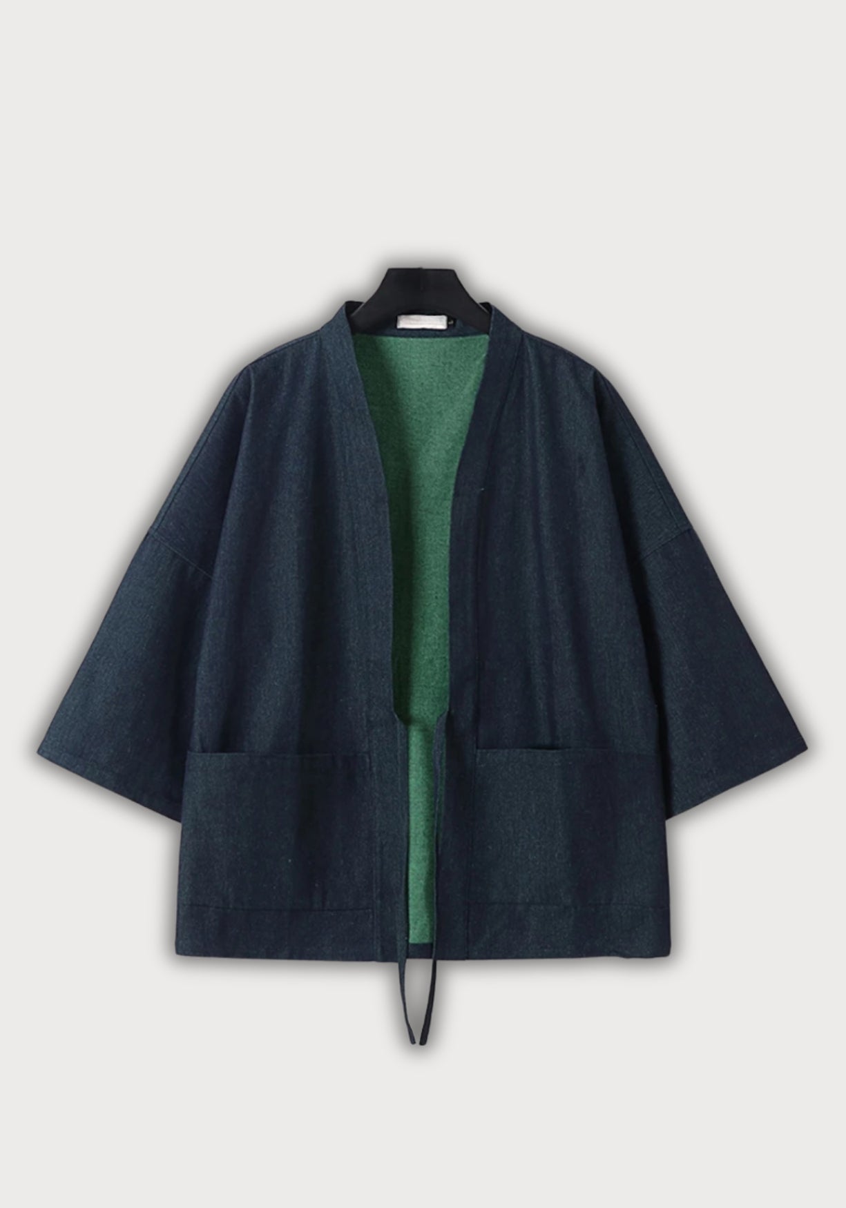 Veste kimono unisexe en denim — réversible Découvrez notre veste kimono en denim pour homme et femme , une pièce unique qui fusionne l’élégance du kimono japonais traditionnel avec une esthétique urbaine moderne. Réalisée dans un denim 100% coton pre