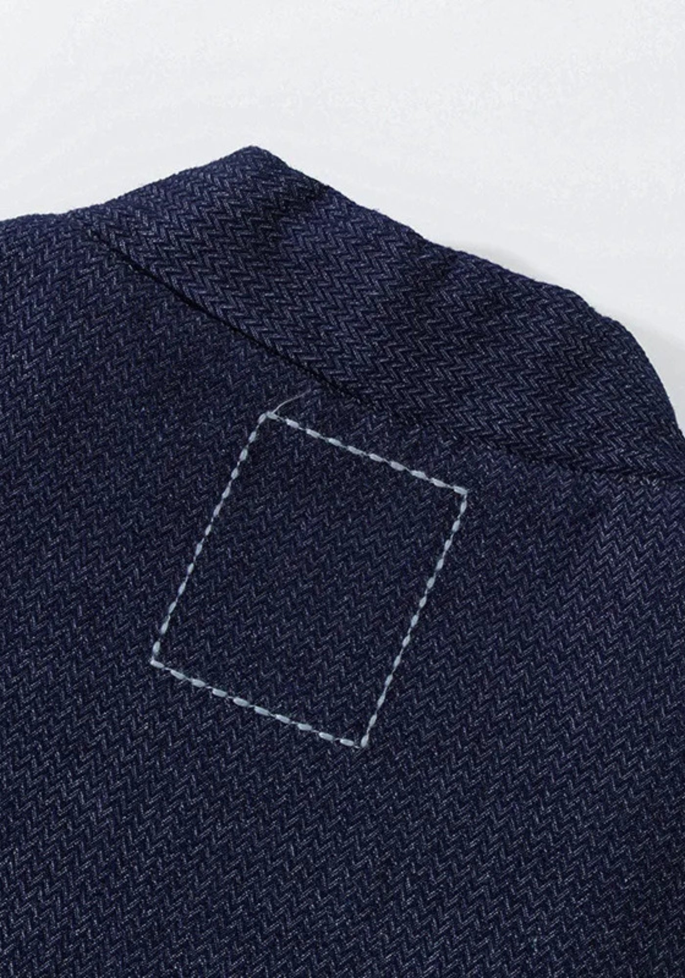 Veste kimono matelassée en denim japonais Cette veste kimono matelassée s’inspire directement des vêtements traditionnels japonais revisités dans une version contemporaine, minimaliste et fonctionnelle. Sa coupe droite et structurée reprend les codes du kimono avec une encolure croisée, des manches larges et une fermeture par liens latéraux, tout en offrant le confort d’une veste moderne pensée pour le quotidien. Confectionnée dans un tissu denim texturé à motif chevron discret, elle affiche un bleu profond légèrement chiné, à la fois sobre et raffiné. Le tissage dense donne de la tenue à la pièce, tandis que le matelassage intérieur apporte une sensation enveloppante, idéale pour les saisons fraîches sans alourdir la silhouette. L’intérieur entièrement doublé et matelassé présente un motif ondulé ton sur ton, visible lorsque la veste est ouverte. Cette doublure technique améliore l’isolation thermique tout en conservant une grande souplesse de mouvement. Chaque détail est pensé pour allier esthétique japonaise et confort moderne. Une veste kimono matelassée au design épuré Coupe droite inspirée du kimono traditionnel japonais Fermeture croisée avec cordons latéraux discrets Matière denim texturé à tissage chevron Matelassage intérieur léger et isolant Deux grandes poches plaquées sur le devant Finitions sobres avec surpiqûres visibles Col kimono structuré, sans bouton ni zip Silhouette unisexe, facile à superposer Comment porter votre veste kimono matelassée ? Cette veste kimono en denim se porte aussi bien ouverte que légèrement croisée, sur un t-shirt, une chemise ou un pull fin. Elle fonctionne parfaitement avec un jean brut pour un total look japonais moderne, ou avec un pantalon ample et des sneakers pour un style urbain minimaliste. Elle peut également remplacer un blazer dans une tenue casual chic, ou se porter comme une surcouche légère en intérieur. Sa coupe fluide permet de la porter toute l’année, notamment en mi-saison ou en hiver doux. Composition : mé